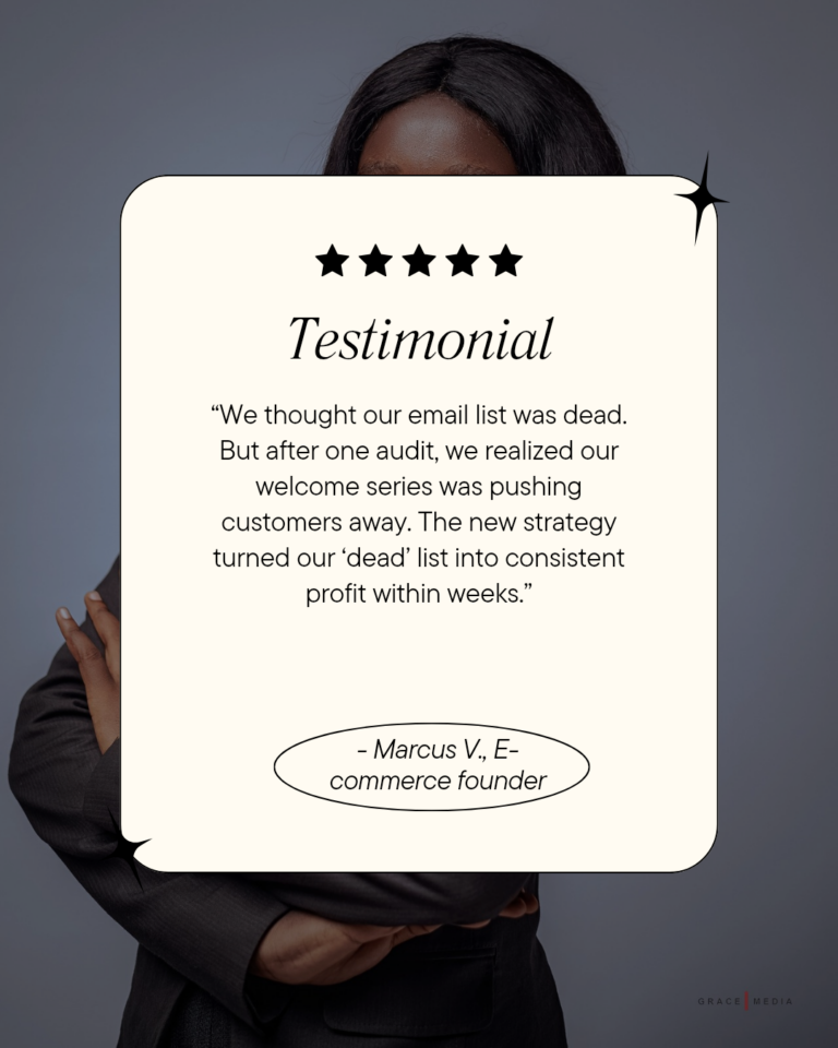 I find where you are losing money. I look at your current emails to find the "leaks." I show you exactly why people aren't opening, clicking, or buying. The Goal: A clear map to fix your mistakes and stop losing sales.
