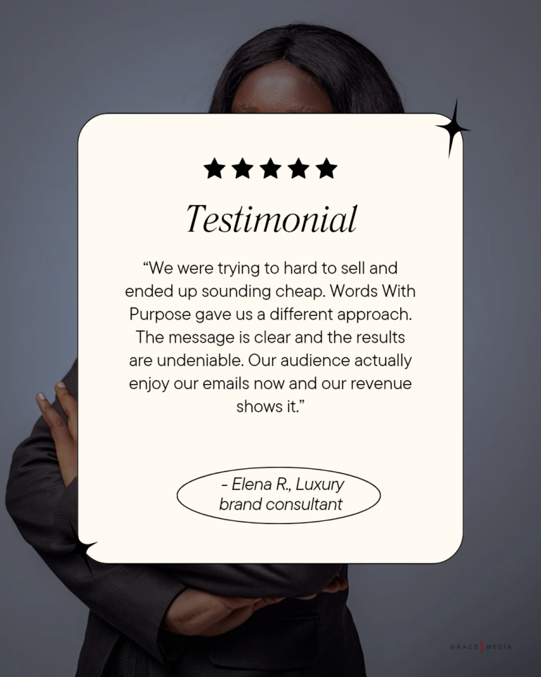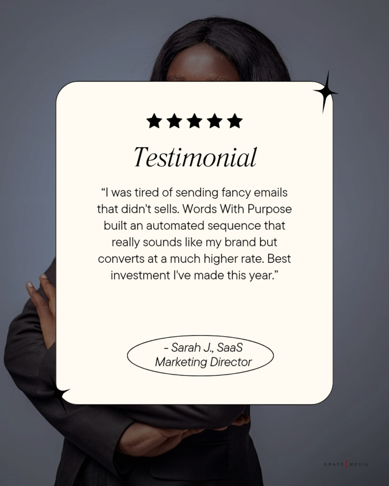 I'm Osahon Grace. The founder of Words With Purpose. My goal is to help every business generate more revenue. We believe every word in your inbox should have a job to do. I started my brand because I saw too many businesses leaving money on the table with ‘junk’ email.